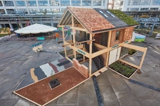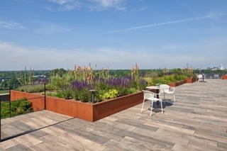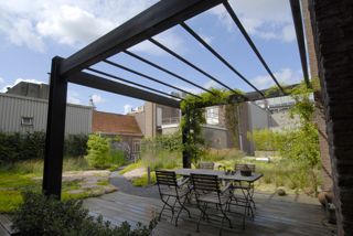 Intensieve daktuin met uitzicht op de skyline van Tilburg